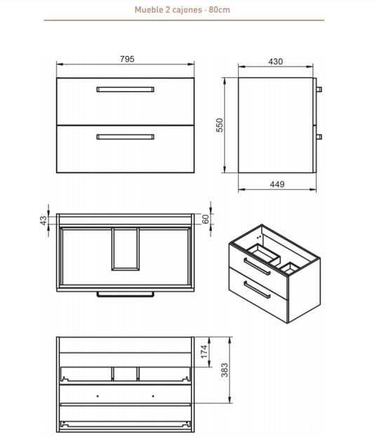 Mueble de Baño VEGA + Encimera 80 COLORS + Lavabo 40 Colors Avio VisoBath
