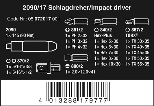 Schroevendraaierset 90Nm 17 stuks 2090/17 Wera 072017