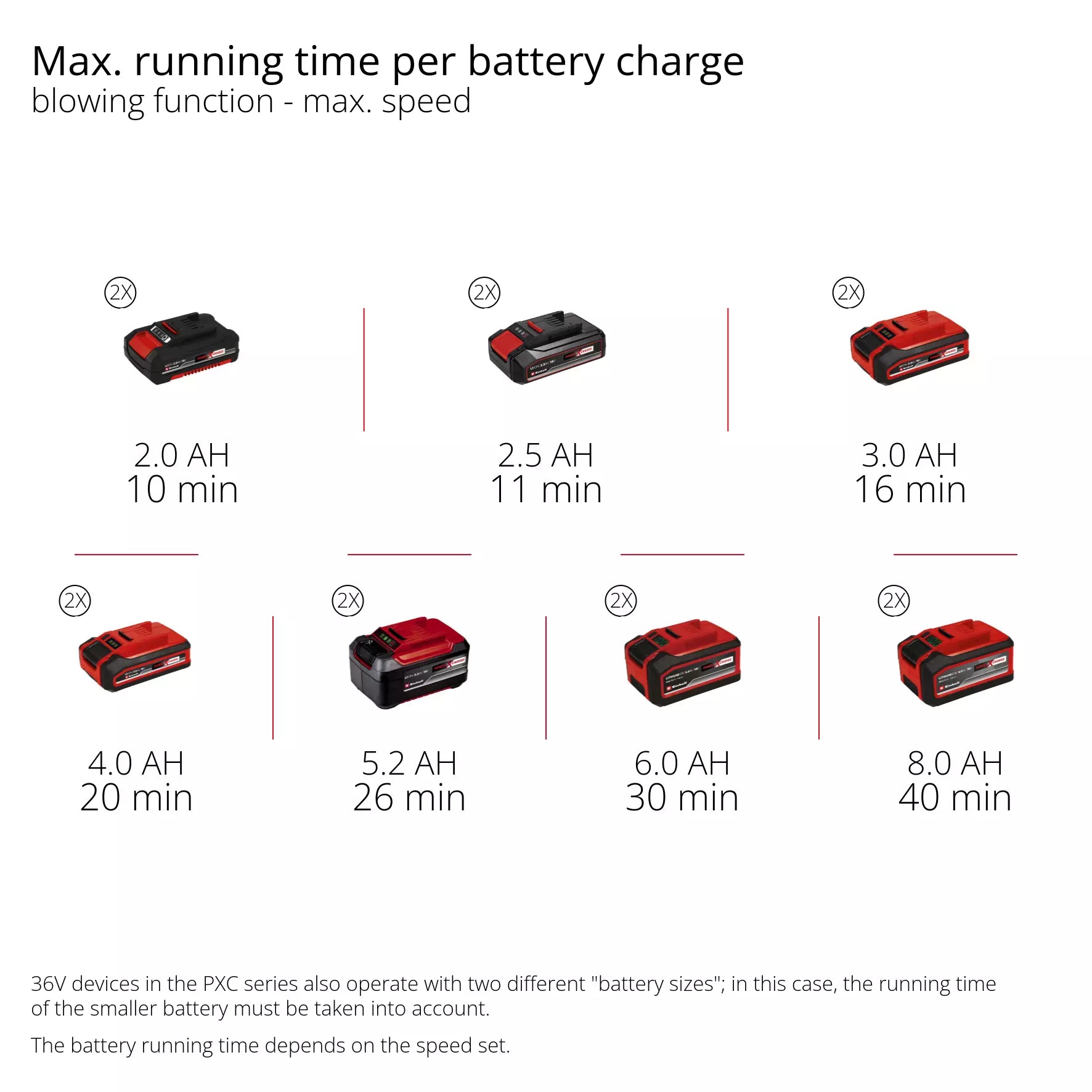 The Einhell GP‑LB 36/230 Li E BL‑Solo is a powerful cordless leaf blower with a 36 V brushless motor (two 18 V batteries, not included). It has an air speed of 230 km/h and a maximum flow rate of 890 m³/h , ideal for professional cordless garden work and with an ergonomic design.