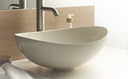 Bathco Begursa sink. Oval countertop sink without overflow, made of cast iron. White color with Axonometric decoration.