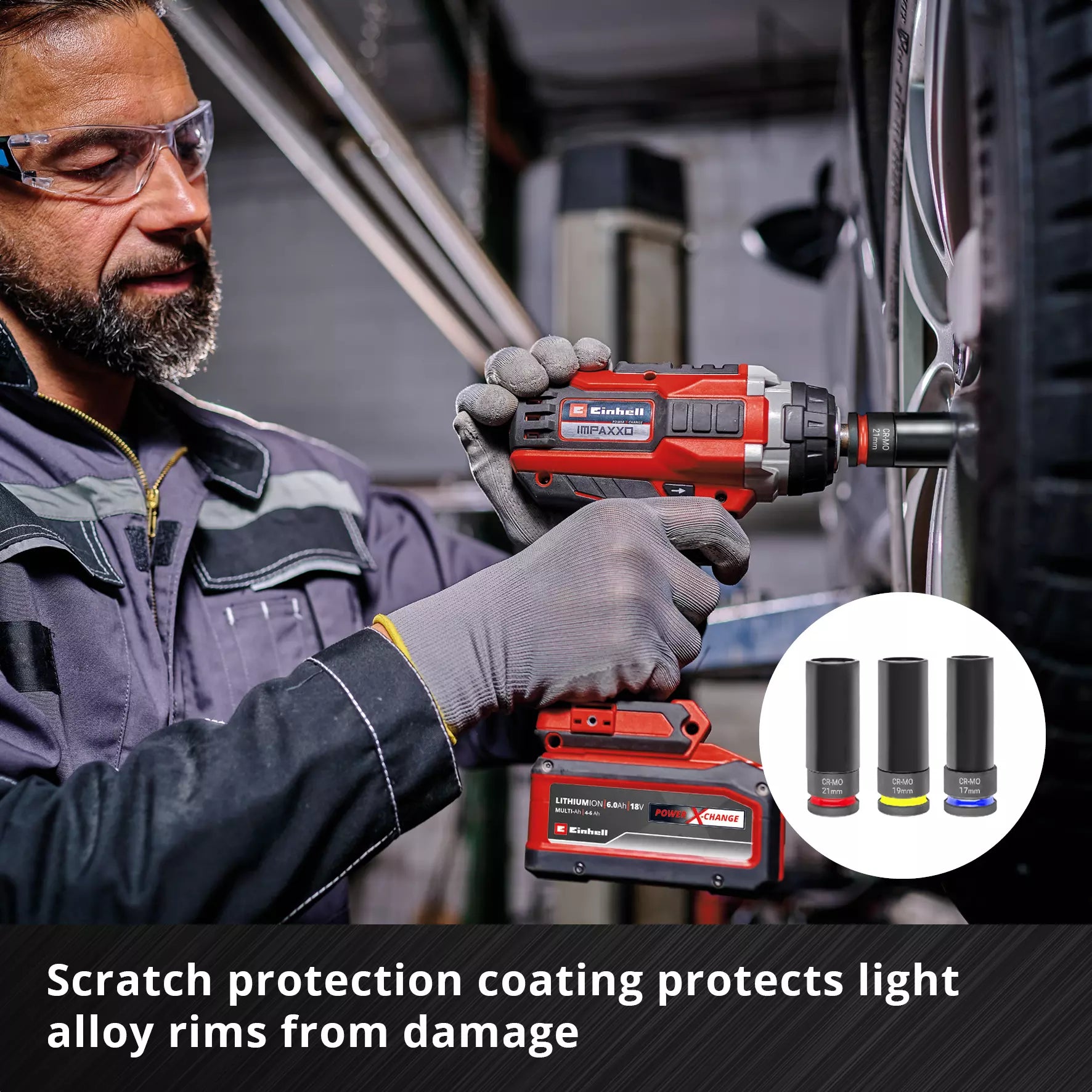 3 long impact sockets, 80mm long, designed for wheel changes on vehicles with alloy wheels.