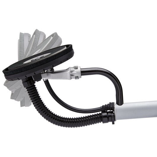 Achieve a smooth, polished finish with this 4.7W electric drywall sander. The variable speed dial and dual-action trigger provide control and versatility in a variety of applications. The 9-inch Velcro sanding pad quickly attaches to sandpaper and mesh, while the articulating head allows for better reach in work spaces. For efficient dust removal on the job site, this electric drywall sander is equipped with an Airlock™ connection to securely connect to compatible DEWALT dust extractors.