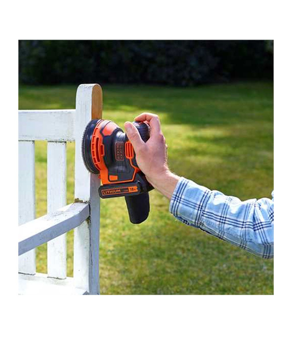 Black+Decker BDCROS18 18V Rotorbital Sander. Sander that leaves you a high-quality finish, the rotorbital movement allows you to sand without leaving marks on the wood