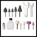 • Las diez muelas presentes en los accesorios ofrecen numerosas posibilidades el envío incluye 1 botella de aceite (sin contenido), 1 boquilla y 2 llaves de sujeción en el práctico maletín de transporte y almacenamiento
