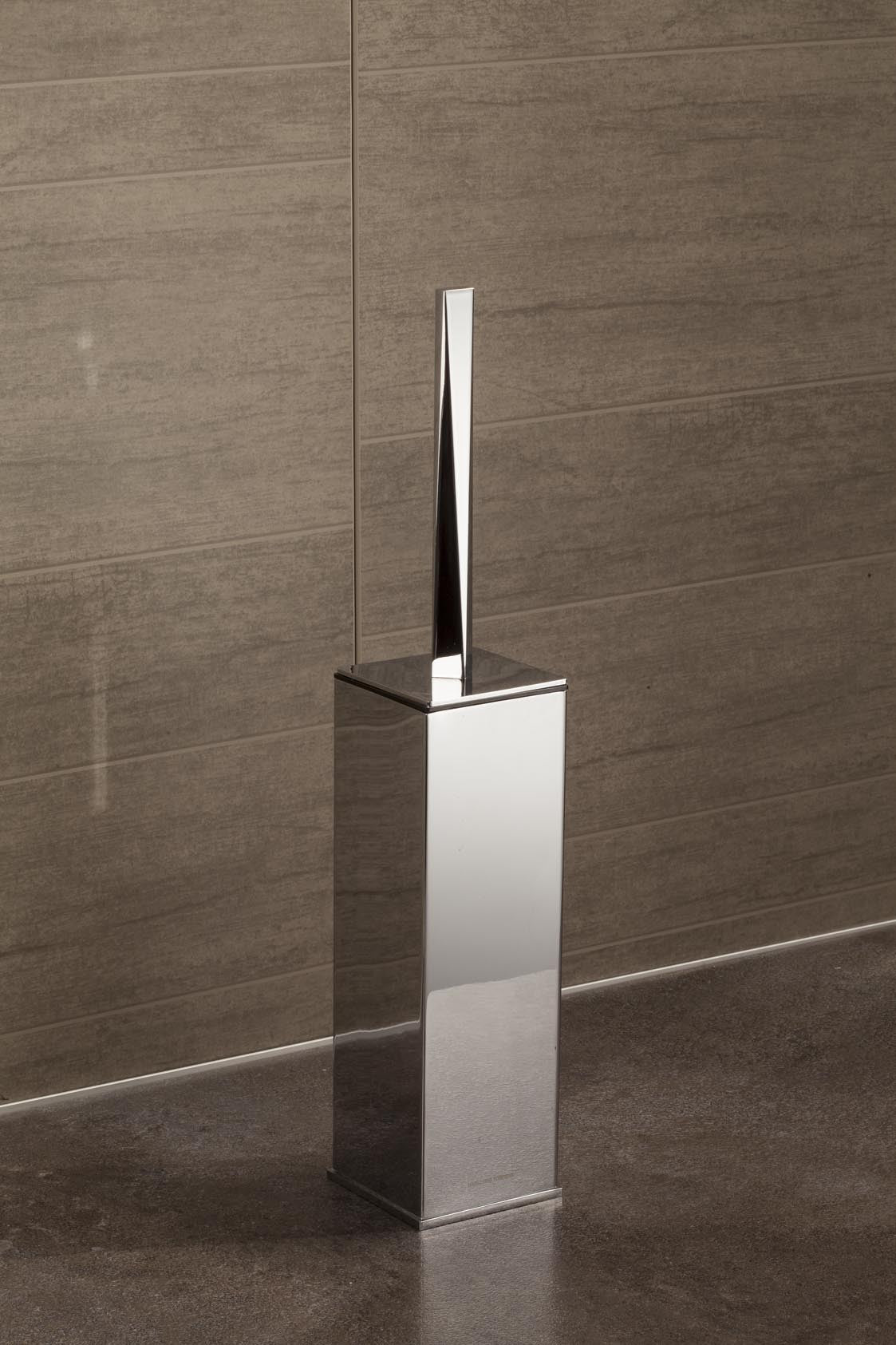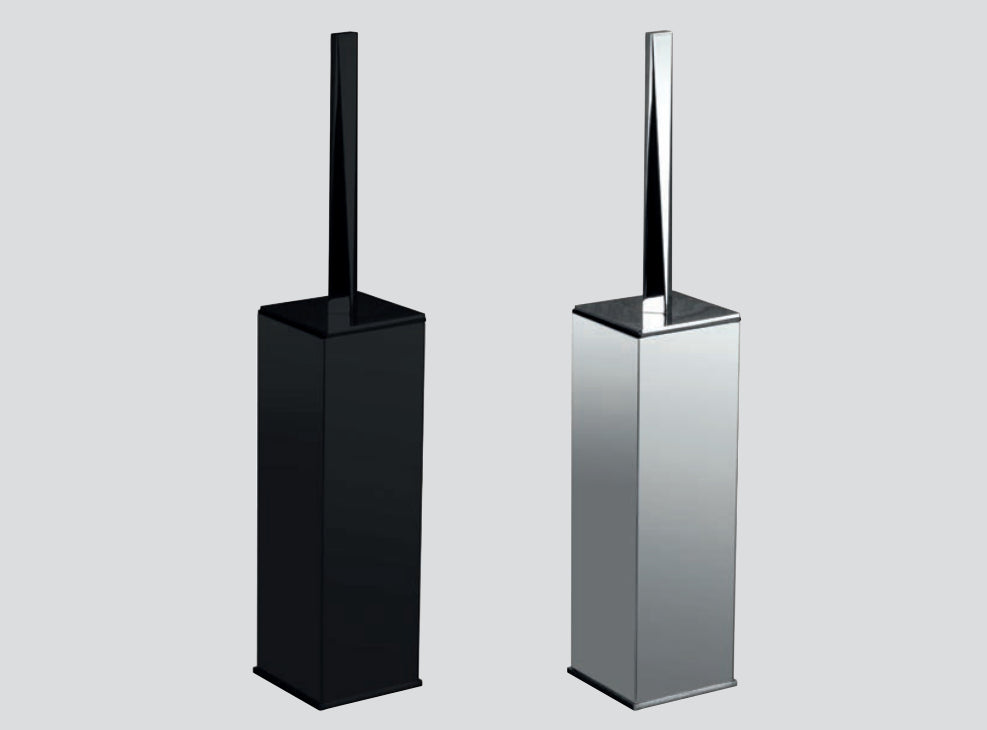 Accesorio de baño para la escobilla del wc. Calidad óptima. Montaje a pared con tornillos o pegado con Mtglue, un adhesivo de ultima generación y con gran resistencia. Accesorio de baño en cromo y negro.