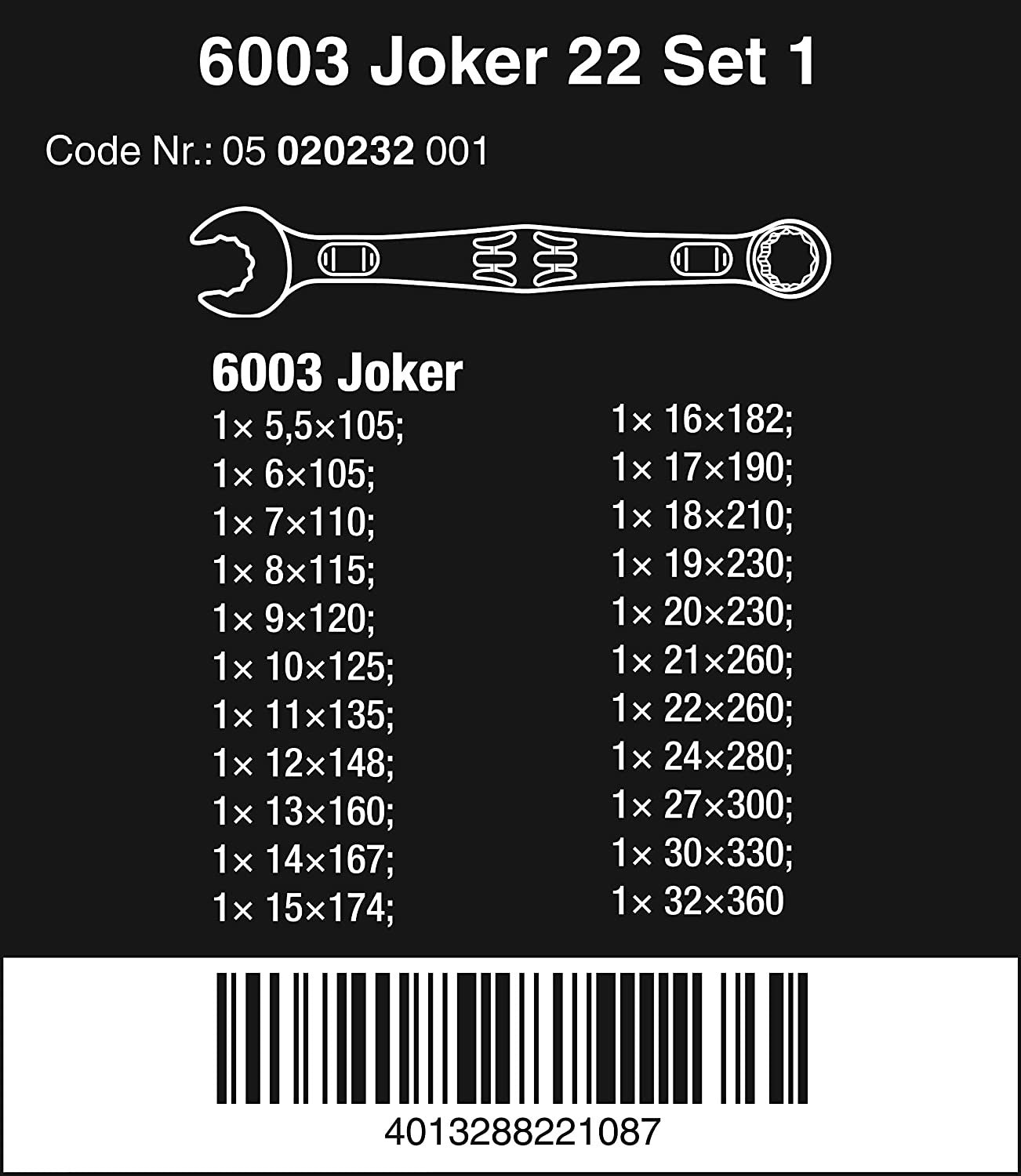 Juego de 22 llaves de boca y anillo Joker 6003 Wera 020232