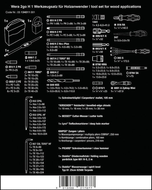 Ensemble d'outils pour le travail du bois 134 pièces Wera 134011