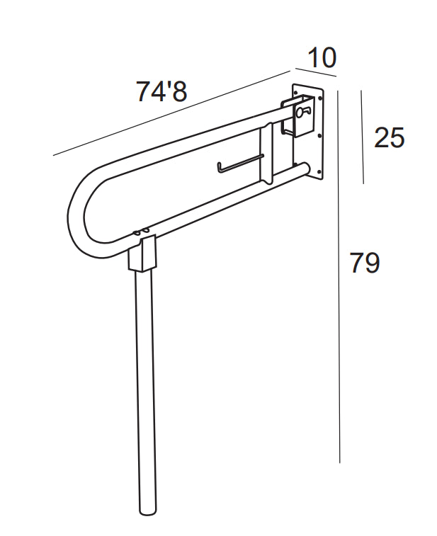 Barre de support pour les toilettes. Une aide technique indispensable pour se lever ou s'asseoir facilement dans la salle de bain. Grâce à la possibilité de la rabattre, cette barre peut être cachée.