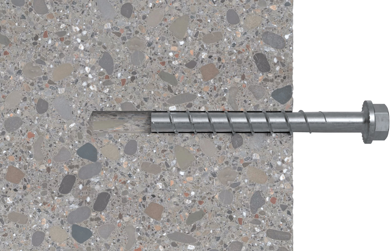 La fischer UltraCut FBS II est la vis à béton pour les exigences de montage les plus élevées. La géométrie spéciale en dents de scie permet une coupe rapide dans le béton. Lors du montage au plafond ou au sol, il n'est pas nécessaire de nettoyer les perforations. Grâce à l'approbation nationale, l'utilisation multiple dans les ancrages temporaires est réglementée, par ex. par exemple. en coffrage. Pour monter la vis murale, une clé à chocs tangentielle avec un écrou adapté à la clé à chocs ou un embout Torx spécial est recommandée. La vis à béton est idéale, par exemple, pour la fixation de garde-corps, de protections contre les chocs, de supports ou de supports de coffrage.