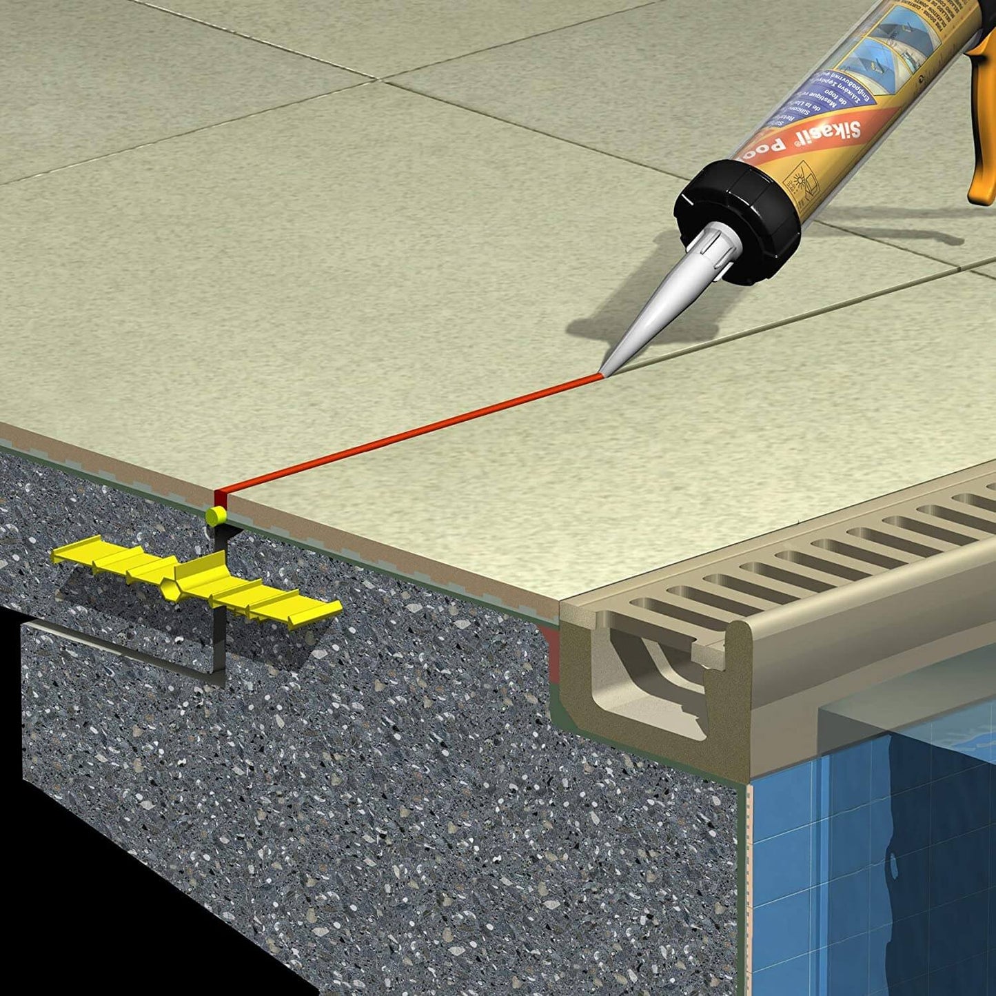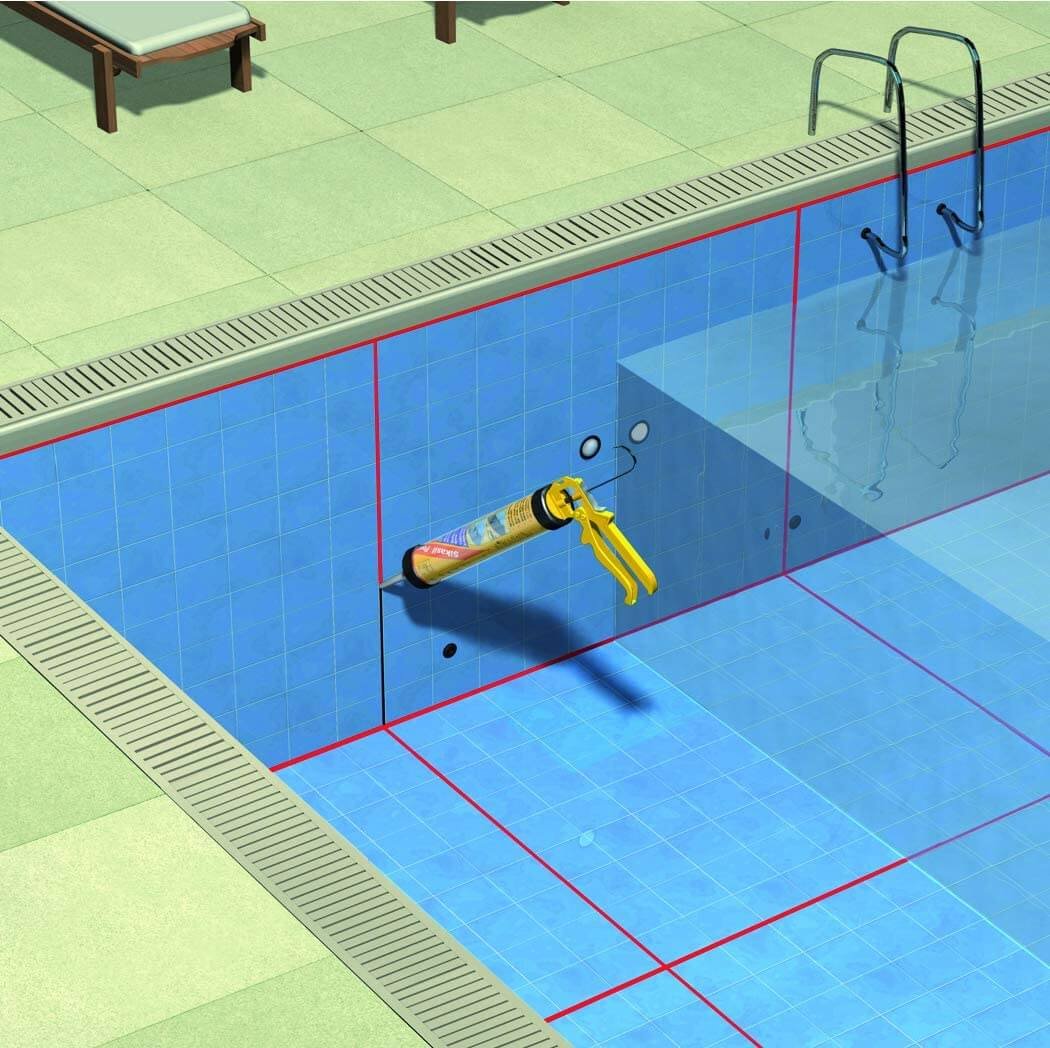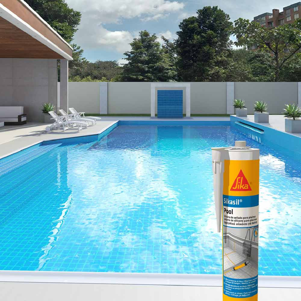 Sikasil Pool convient aux joints des piscines, des zones en contact permanent avec l'eau comme les douches des zones sportives, entre les carrelages, les pièces en céramique, le béton, le verre, les métaux et autres supports courants utilisés dans la construction.