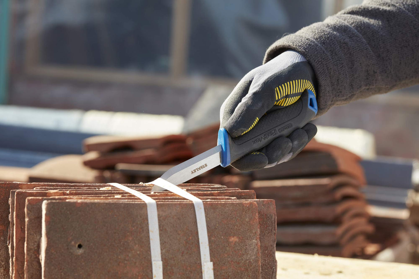Couteau en acier inoxydable Stanley 0-10-232. Couteau à manche bi-matière, lame en acier carbone de 1,5 mm d'épaisseur, avec un niveau de coupe élevé.