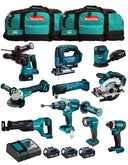 Kit Makita DLX1043BL3 composé de DHP486 + DHR243+ DGA504+ DTD152+ DJV182+ DSS610+ DJR186+ DBO180+ DTM51+ DML815+ 3x5.0Ah + DC18RC + 2xLXT600