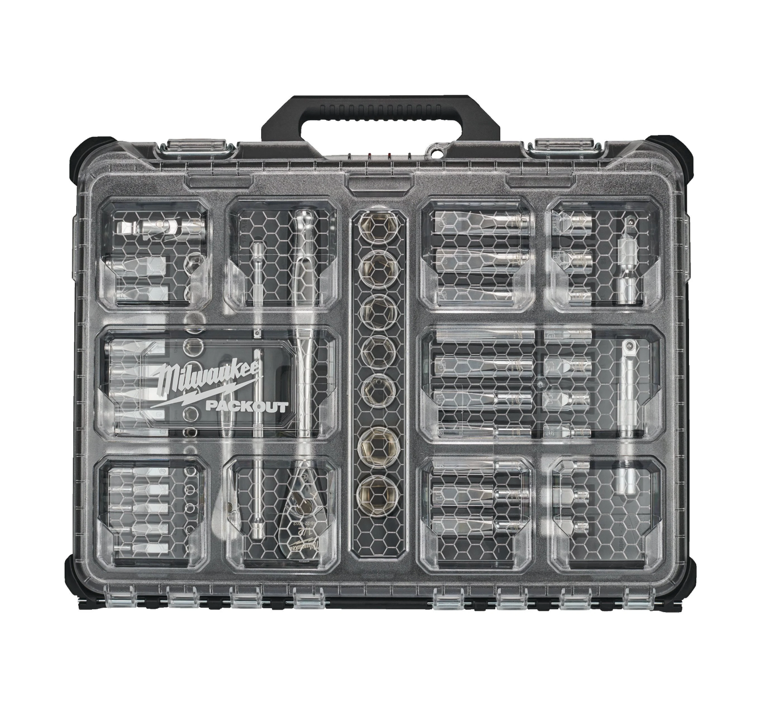 Le coffret de 63 douilles et cliquets Milwaukee (entraînements 1/4" et 1/2") est un ensemble d'outils à main complet conçu pour les mécaniciens, les techniciens et les professionnels qui recherchent une solution complète de douilles et de cliquets métriques dans un format compact et portable . Ce coffret est livré dans un organiseur Slim compact compatible avec le système modulaire PACKOUT™ , permettant un rangement organisé et une intégration avec d'autres modules PACKOUT.