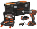 Marteau perforateur avec technologie Black+Decker Brushless avec puissance 18 V, mandrin de 13 mm. Comprend 2 batteries de 2 Ah, une boîte à outils et une mallette avec 31 accessoires.