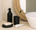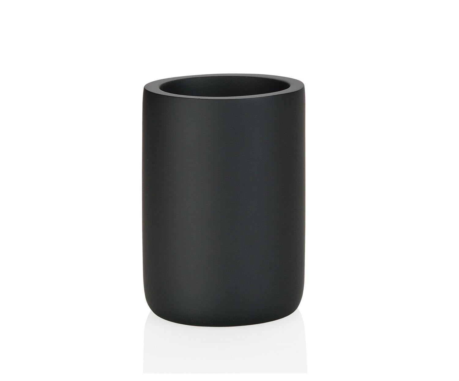 Porte-brosses à dents de salle de bain au design minimaliste et élégant, en polyrésine noire mate , idéal pour ranger avec style vos brosses à dents et accessoires d'hygiène sur n'importe quel lavabo ou plan de travail.