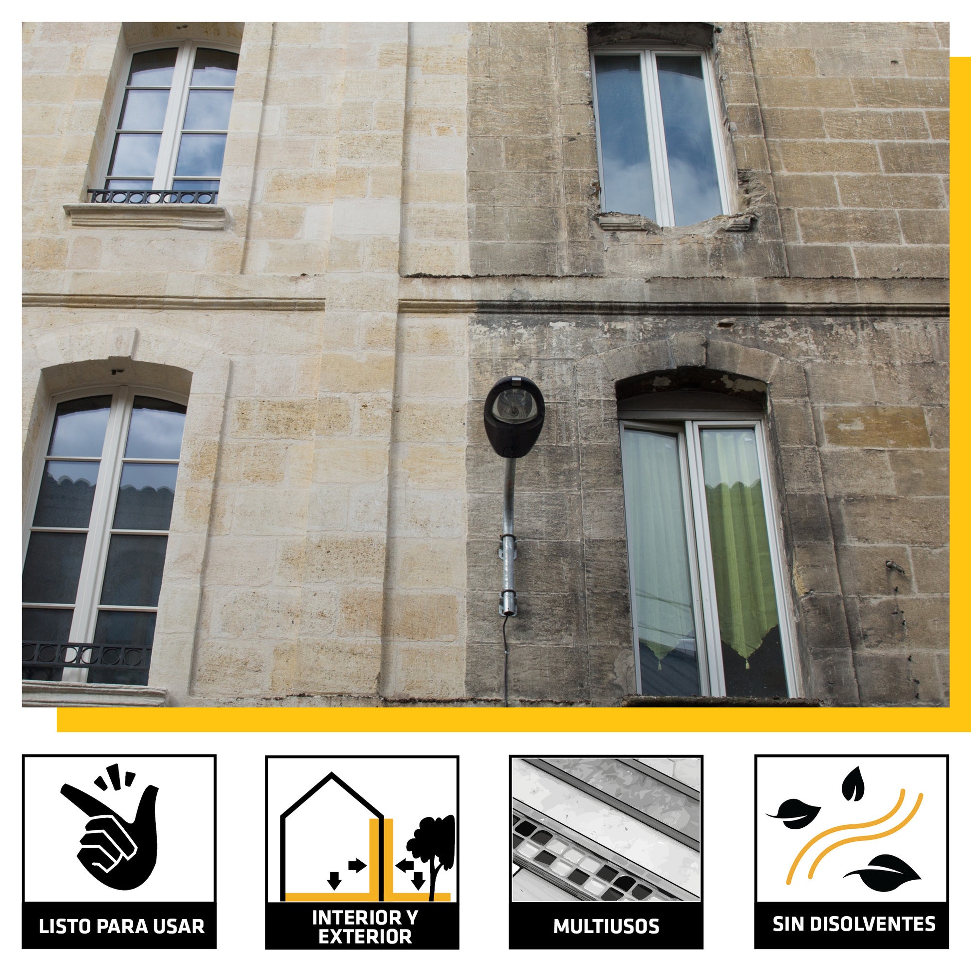 - À base d'eau : Formule écologique et sûre , sans solvants chlorés, acides forts ni bases.