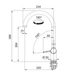 Robinet de cuisine avec un design col de cygne. Soumis à des tests de qualité stricts, tant avec de l'eau qu'avec de l'air sous pression.