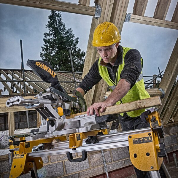 La scie à onglets télescopique Dewalt DCS265N-XJ est un outil électrique de 18 V avec batterie XR, idéal pour couper de gros matériaux à n'importe quel angle d'onglet ou de biseau.