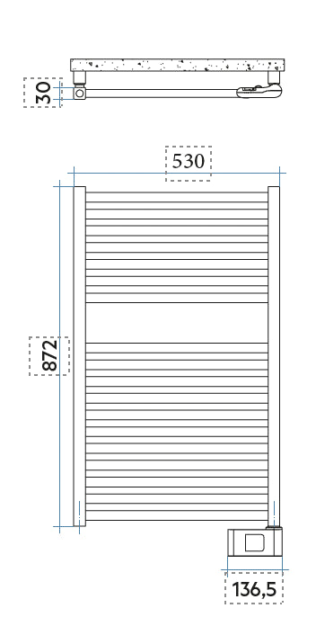 QUADRÉ en version électrique uniquement est la solution idéale pour les espaces de vie, où le chauffage n'est pas possible ou où le raccordement normal au système de chauffage est pratique. Disponible en 4 hauteurs et une largeur de 530 mm.