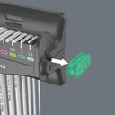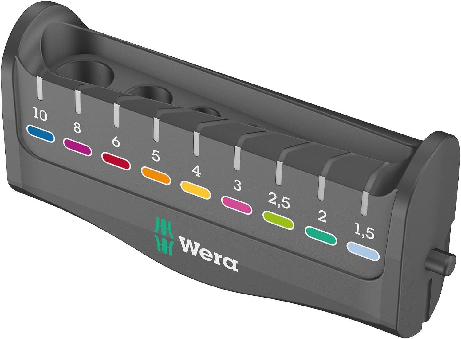 Een bijzonder voordeel is de handige opslag op een plank die rechtop op tafel kan worden gezet of aan de muur kan worden gehangen. Bovendien bevat het rek een slimme verwijderbare magnetiseur die kan worden gebruikt om schroeven en gereedschapsbits te magnetiseren (en demagnetiseren); U hoeft niet langer te worstelen om de schroef met uw tweede hand vast te houden.