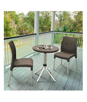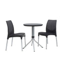 Meubelset Balkon Chelsea 3 Stuks Curver. Set met nieuwe combinatie tussen body van dubbel plat rotan van 7 mm en metalen poten, bestaande uit twee stoelen en een tafel.