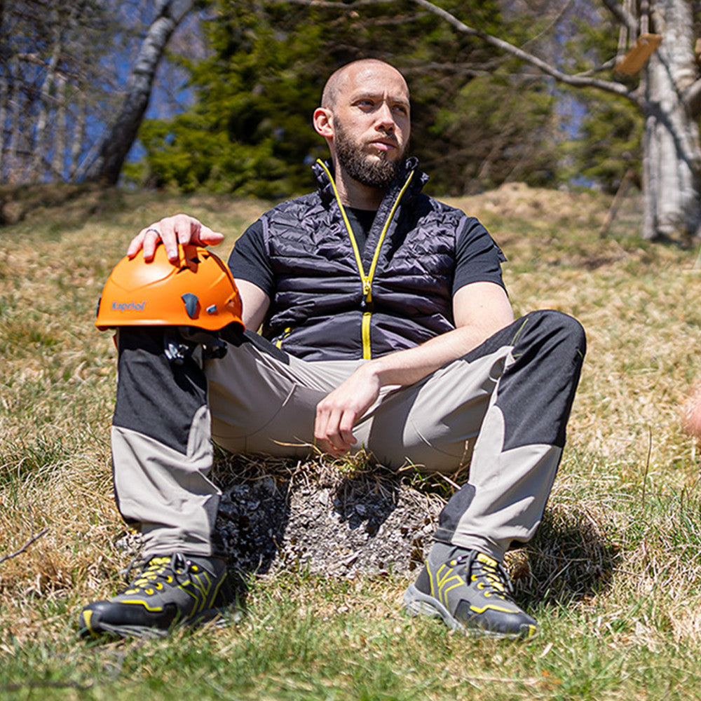 Technisch model van elastisch materiaal om bewegingsvrijheid te garanderen. De stof met deze "waterafstotende" afwerking zorgt ervoor dat water van het oppervlak afloopt. Ideaal voor activiteiten die maximale functionaliteit en comfort vereisen.