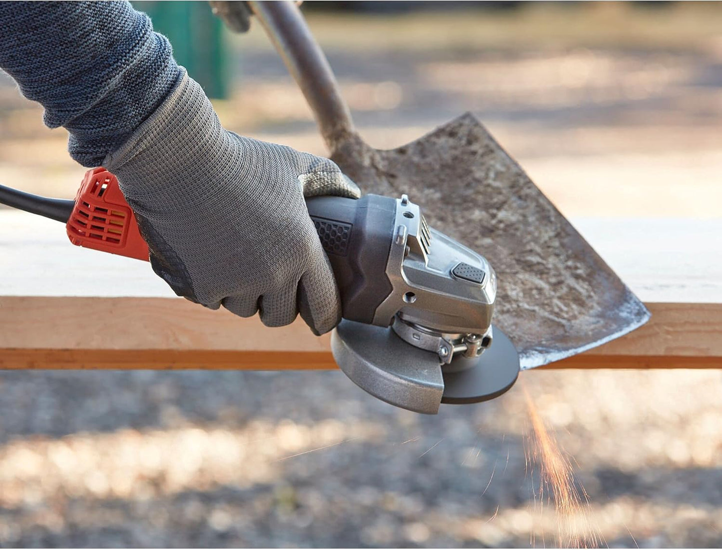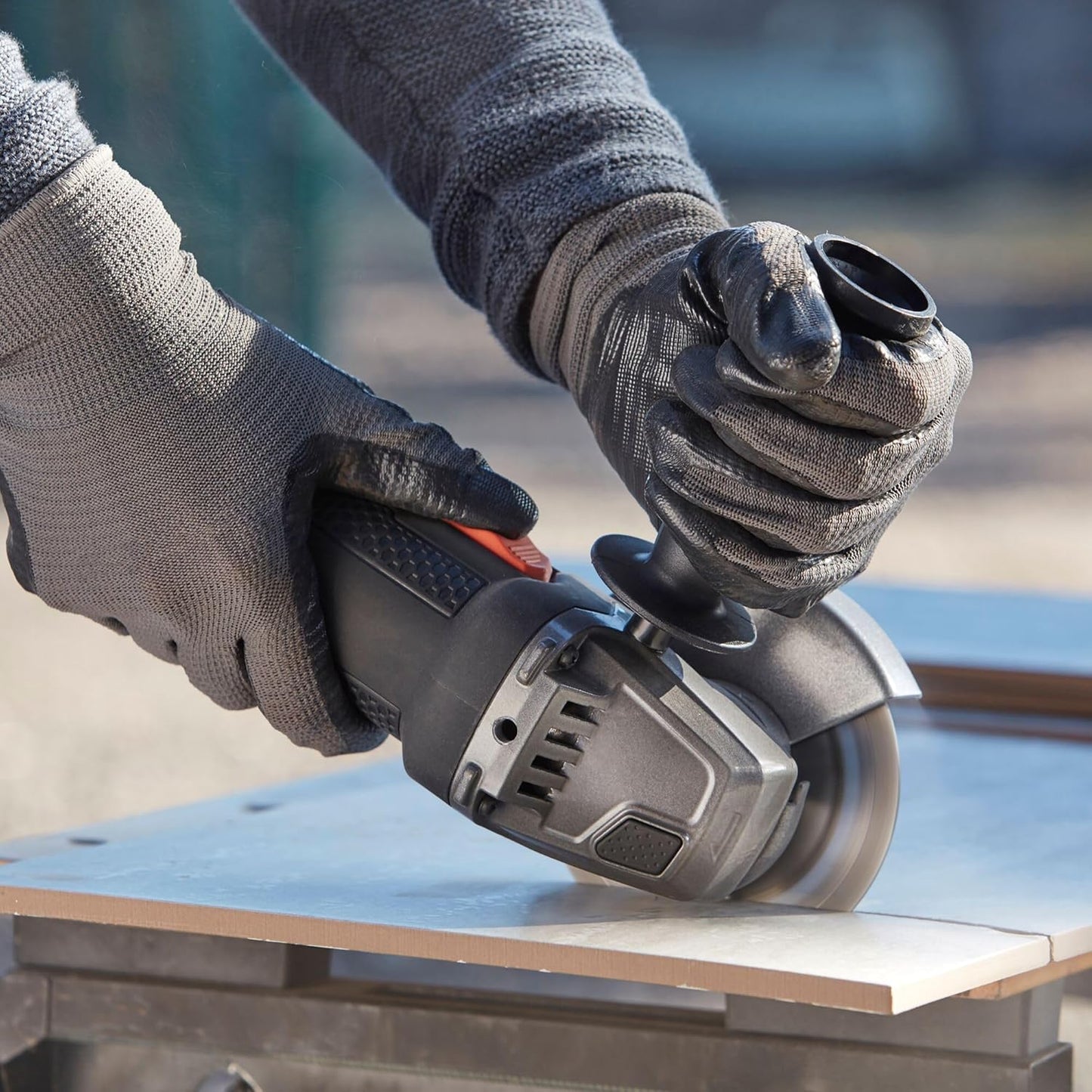 The 900W powerful angle grinder allows you to easily cut metal pipes, stone slabs, and tiles, as well as remove rust and paint. Its 125 mm disc enables access to hard-to-reach areas. The grinder features a soft start for enhanced control and comfort, vibration reduction during startup, a lock-on switch, and 3 different handle positions.