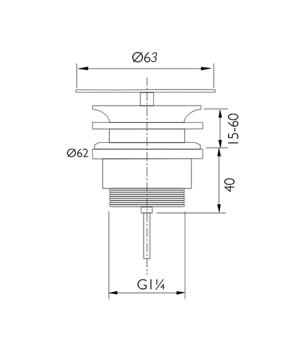 Afvoerkraan chroom van het merk Wirking met universeel Quick Clac sluitsysteem, plat rond, messing verchroomd met schroef. Met of zonder overloop. Uitgang 1" 1/4. Hoogte 40 mm.
