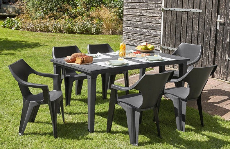 - Veelzijdig en combineerbaar: Het neutrale ontwerp in grafietkleur past moeiteloos bij elke buitentafel of tuinmeubilair.