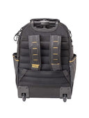 Houd uw gereedschap, waardevolle spullen en andere benodigdheden binnen handbereik met de DEWALT PRO Rolling Backpack. Deze zachte opbergoplossing is ontworpen met duurzame 1680 denier stof en beschikt over 46 individuele vakken, een IP54 waterdicht compartiment en een apart laptopcompartiment, zodat u georganiseerd kunt blijven op de zwaarste werkplekken.