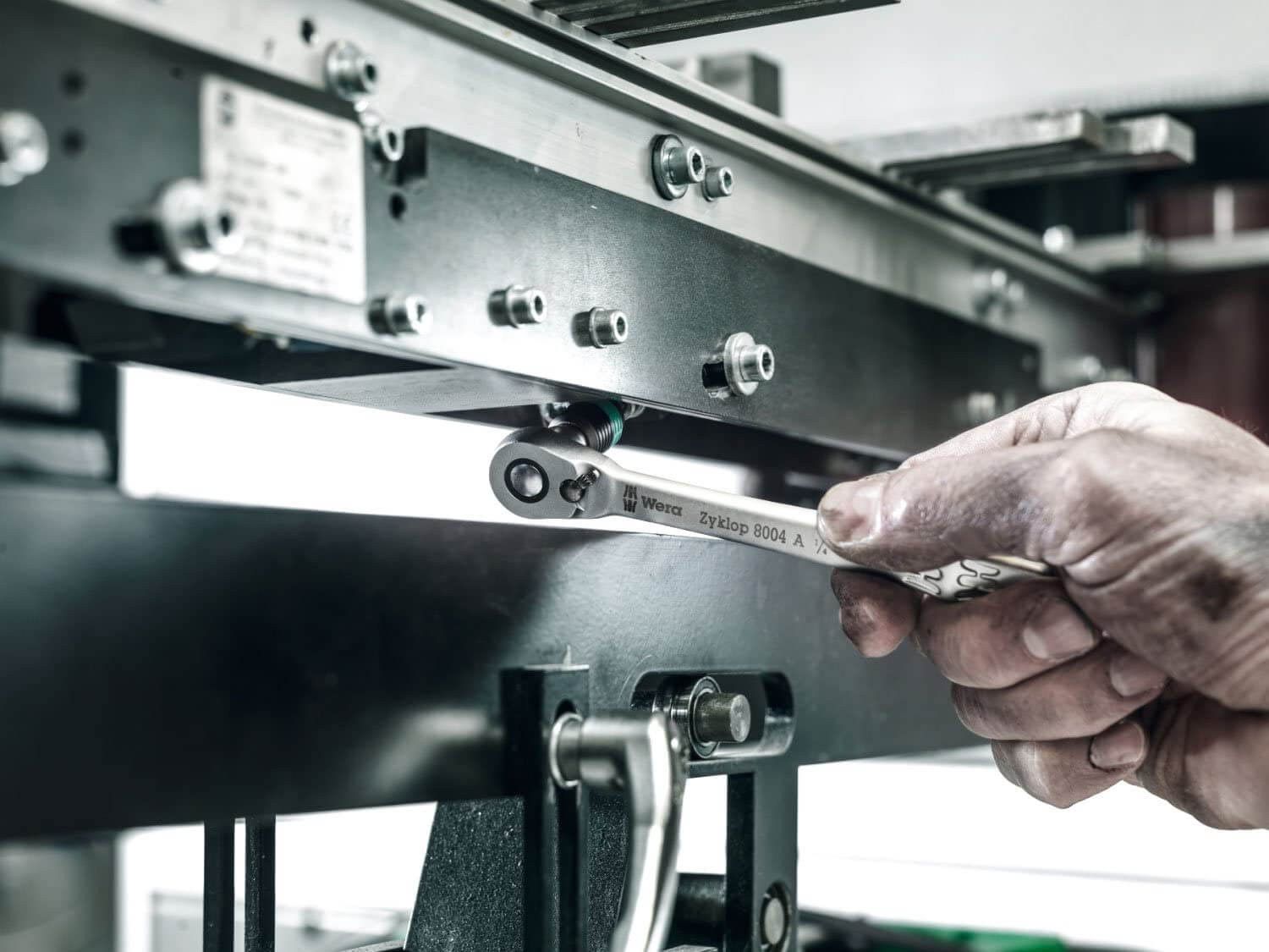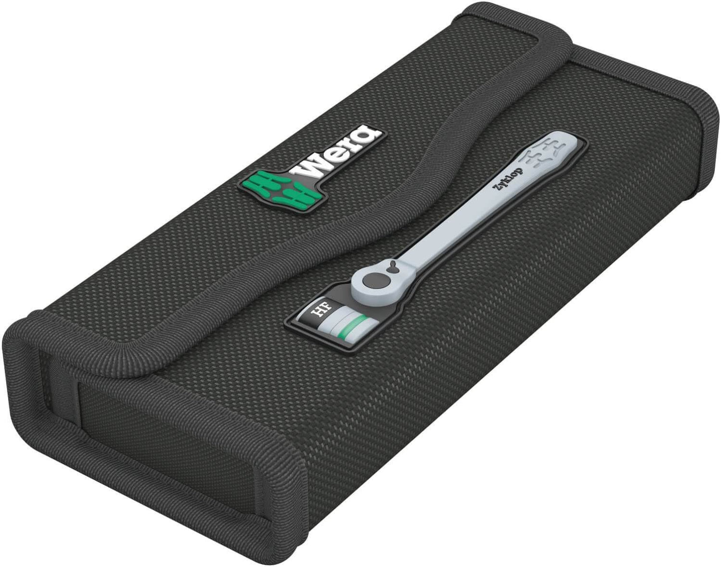 Een volledig nieuw gevoel voor dit type ratelset ontstaat door de nieuwe, uiterst robuuste en duurzame textieldozen, die ook verticaal kunnen worden geplaatst voor meer orde op de werkplaatsplank. De textiel buitenkant van de doos biedt ook extra bescherming van het oppervlak. Het minimale gewicht en volume maken het voor de gebruiker gemakkelijk om zich te verplaatsen. Met "Take it easy" zoeksysteem voor gereedschap: gekleurde markeringen volgens grootte.