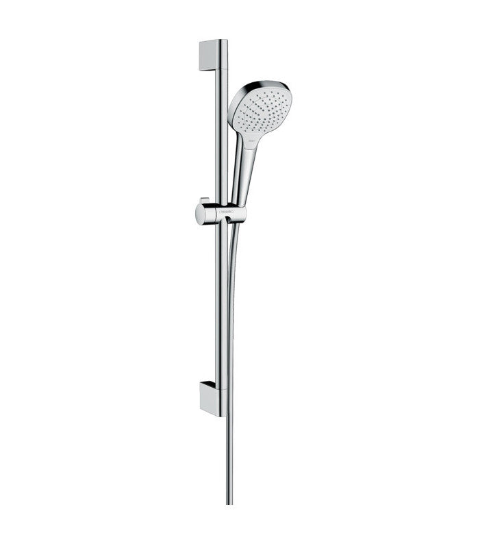 De Eco Smart doucheset bestaat uit een Croma Select E Vario handdouche, een Unica'Croma douchestang van 0,65 m en een Isiflex doucheslang van 1,60 m, met Rin, Turbo Rain, IntenseRain straal en een doorstroomsnelheid van 9l/min. Exclusieve HANSGROHE technologie zoals het QuickClean- of EcoSmart-antikalksysteem, dat water- en energiebesparing garandeert.
