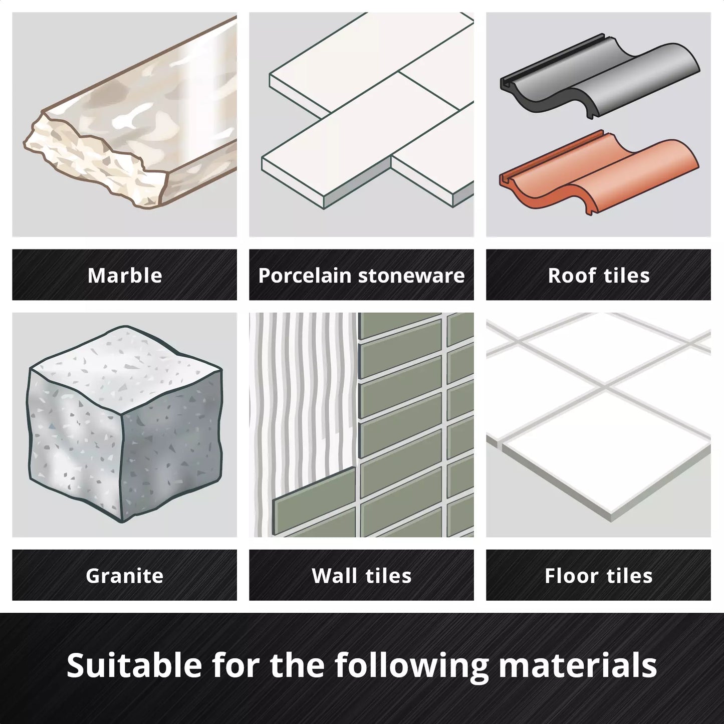 - Ontworpen voor het boren in porcellanato, marmer, graniet, dakpannen en muur- en vloertegels.