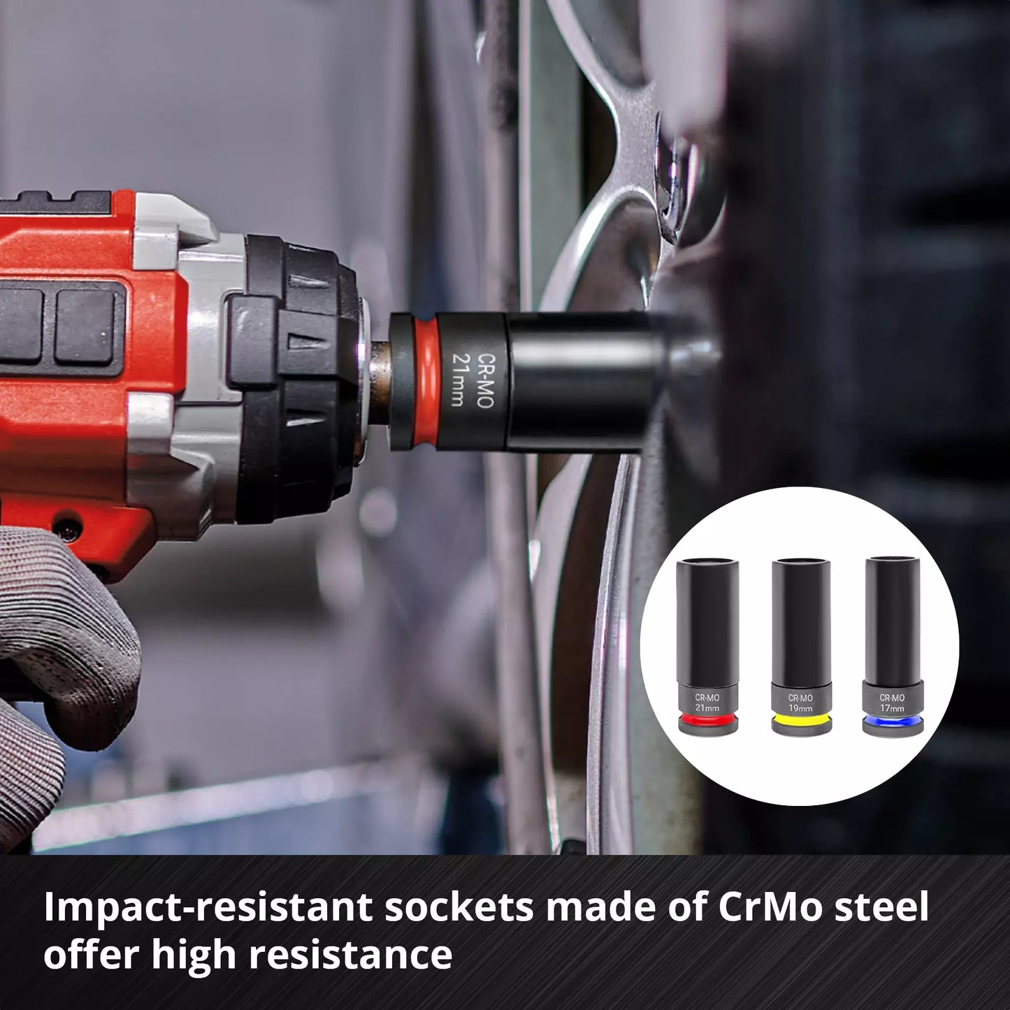 - Inbegrepen maten: 17 mm, 19 mm en 21 mm.