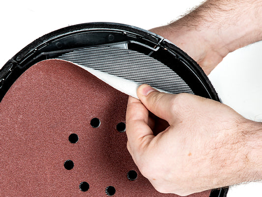 - De schuurplaat is voorzien van klittenband, waardoor je gemakkelijk schuurpapier kunt verwisselen.