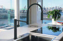 Onbeperkte functionaliteit. De manoeuvreerbaarheid van de buis is essentieel om een zo groot mogelijke werkruimte te bestrijken. De uitschuifbare uitloop helpt bij bepaalde handelingen. Volledig 360° draaibare kraan en flexibele uitloop die geen ruimte in beslag neemt in de kast.