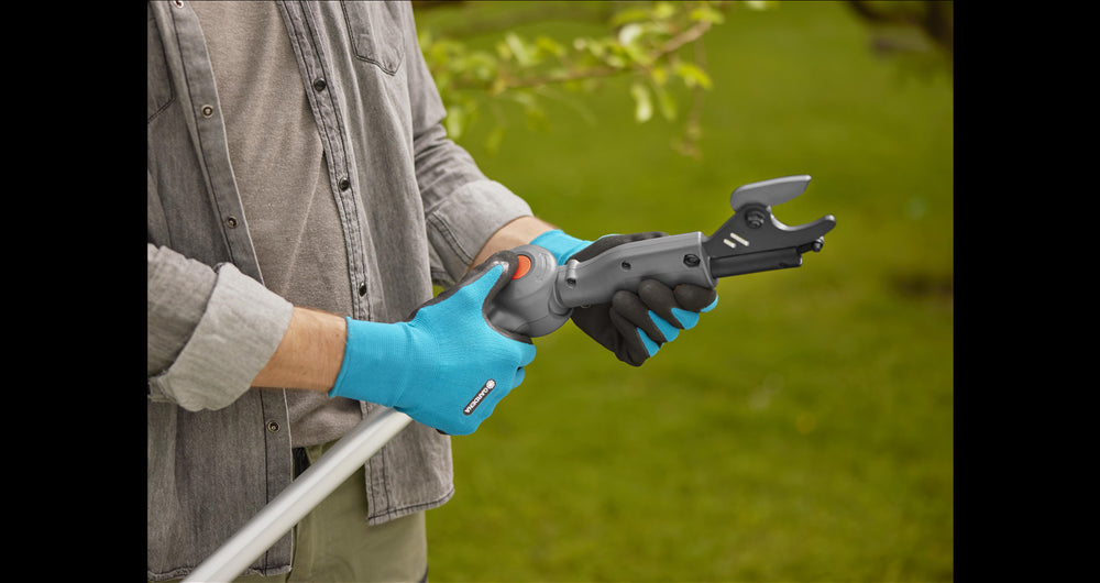 Het vermogen van de gehele accu zorgt ervoor dat u gemakkelijk kunt zagen zonder dat er veel kracht nodig is. Originele Gardena-messen worden in Duitsland gemaakt van gehard staal en zorgen voor een zuivere, gladde snede in vers hout met een diameter tot 28 mm.