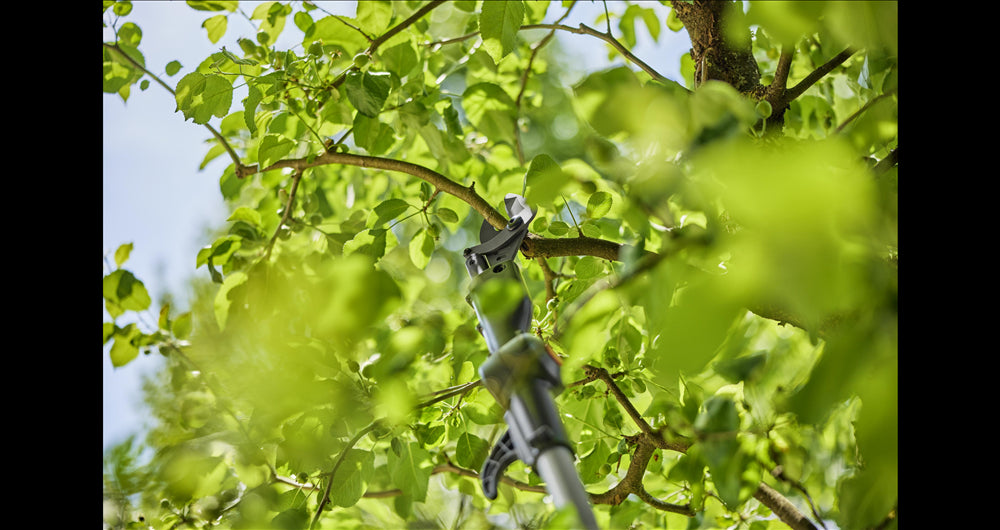 - Met uitgeschoven telescoopsteel bereikt de accu-aangedreven telescopische snoeischaar een lengte van 2,5 meter, zodat je comfortabel vanaf de grond kunt werken op een hoogte tot 4 meter. Dankzij de telescopische functie en de afneembare steel is de snoeischaar flexibel inzetbaar. Met de Power For All accuhouder kun je gemakkelijk takken snoeien.