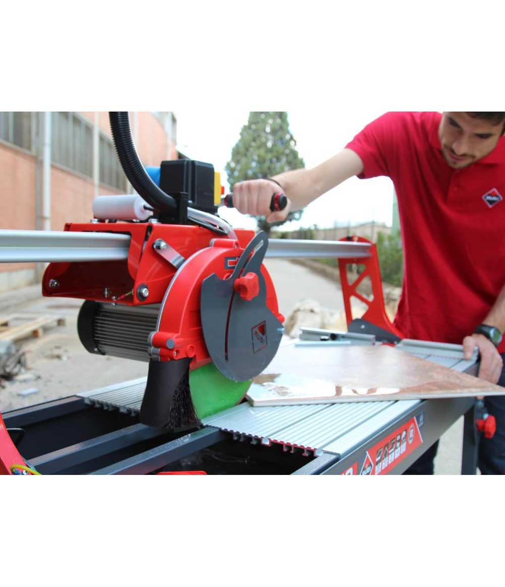 El motor de 1,5 CV, con protector térmico, es perfecto para el corte de piezas de gres porcelánico.