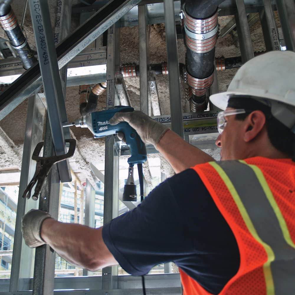 De Makita FS4200 gipsplaatschroevendraaier is een 570 W elektrisch gereedschap met een gewicht van 1,4 kg, ergonomisch ontworpen om vermoeidheid van de hand tijdens lange werkdagen te minimaliseren, en biedt maximale in-line stuwkracht naar de punt.