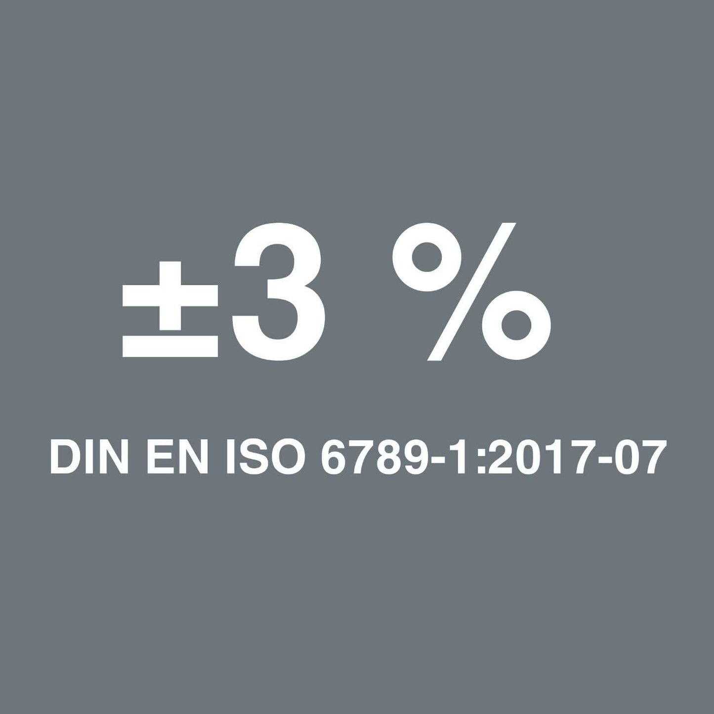 - Meetbereik: 20-100 Nm; nauwkeurigheid van +- 3% volgens DIN EN ISO 6789-1:2017-07