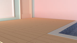 We beginnen met het leggen van de eerste rij vloerplanken vanuit een hoek van de te dekken ruimte. De eindverbindingen moeten altijd samenvallen met de latten.