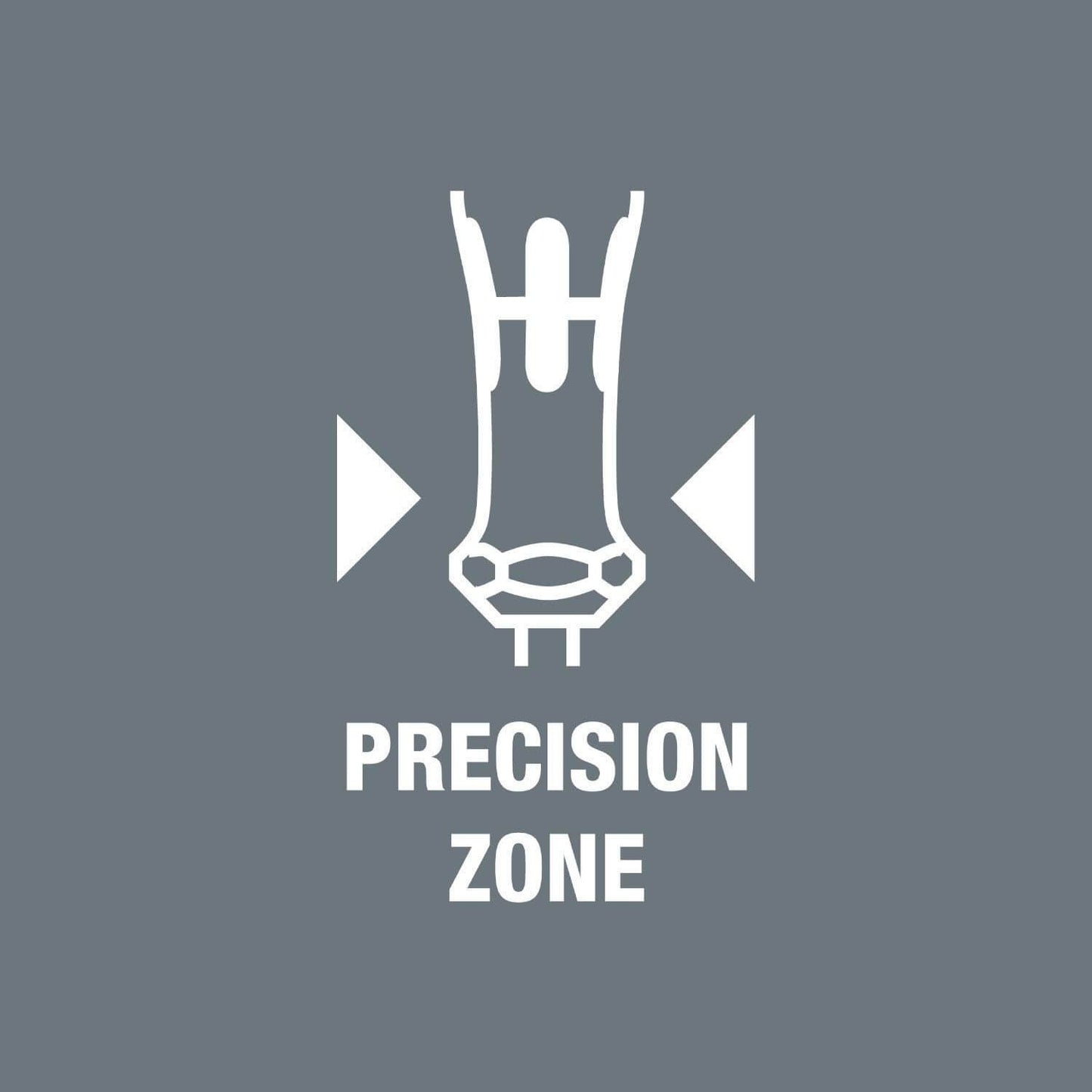 - De precisiezone direct boven de schacht geeft de gebruiker een goed gevoel voor de hoek
