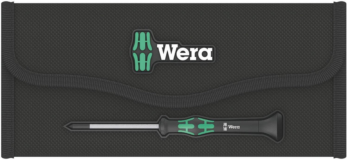 Wera Micro schroevendraaier voor fijnmechanische toepassingen, in een set. Door uw hand op de draaidop te laten rusten en dankzij de snelle draaizone onder de draaidop wordt een ultrasnelle draaibeweging bereikt.