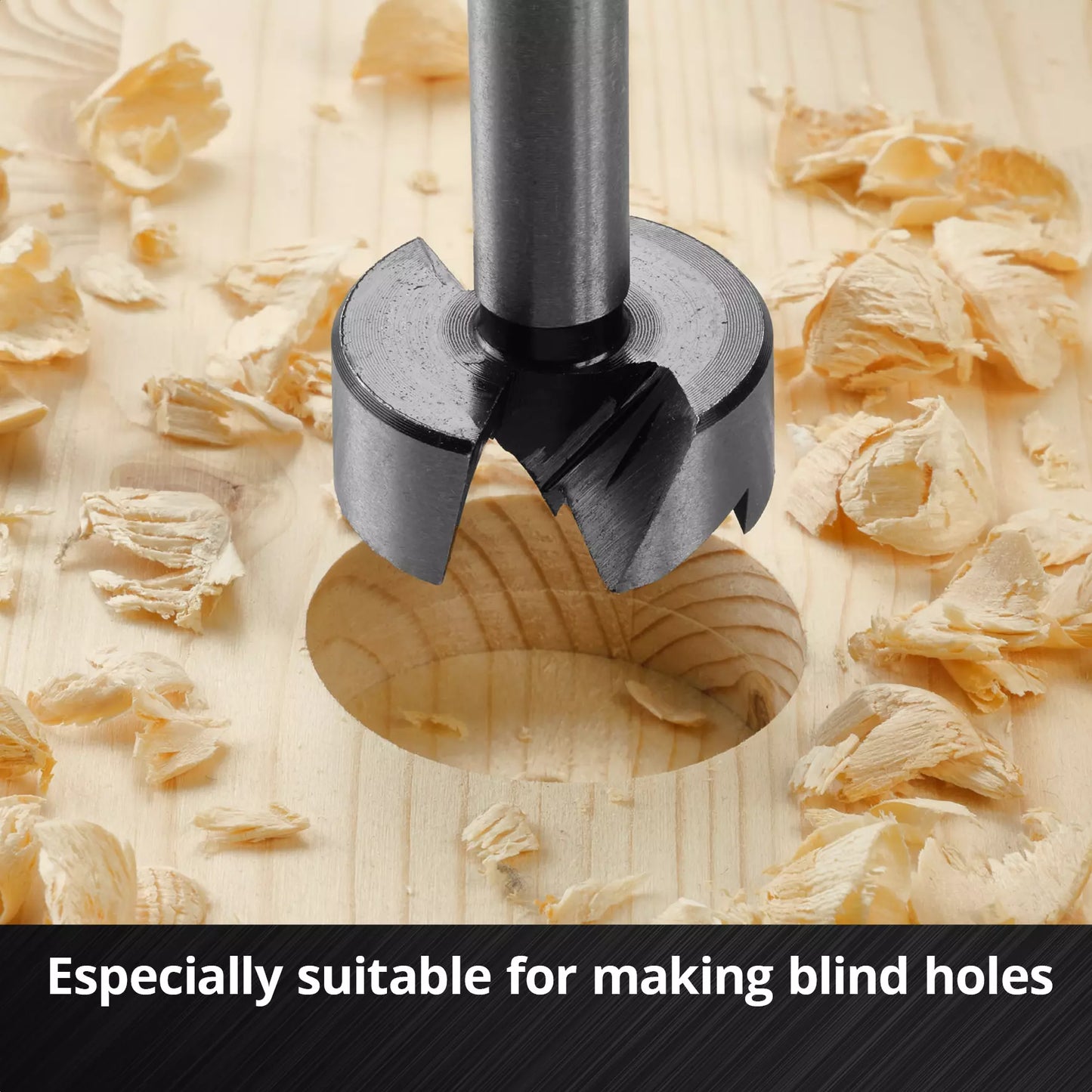 De Einhell scharnierboorset van 5 stuks (49706003) is een set Forstnerboren, ontworpen voor het maken van nauwkeurige en nette gaten in hout. Ze zijn bijzonder geschikt voor het plaatsen van potscharnieren en andere houtbewerkingen waarbij gaten met een grote diameter vereist zijn.