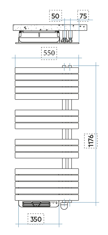 Elektrische radiator met booster. De radiator is gevuld met een koelvloeistof en is gecombineerd met een 1000 watt elektrisch eindversterkersysteem. Dit systeem zorgt voor een gelijkmatige temperatuur in de ruimte waar het is geïnstalleerd. SOUL_S Air Electric is verkrijgbaar in 3 hoogtes en in een breedte van 550 mm.