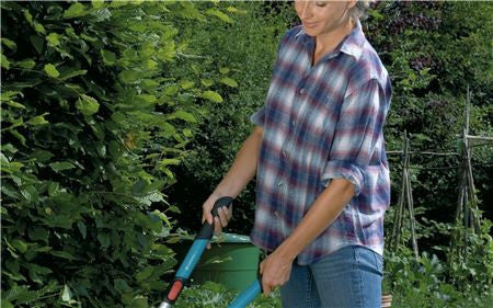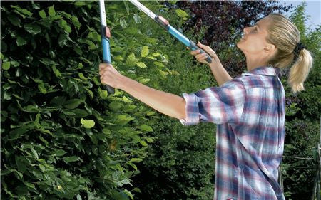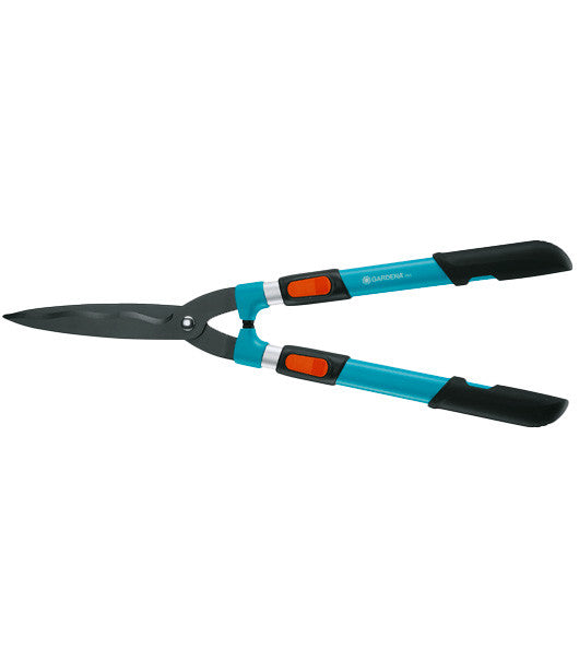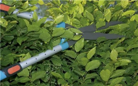 De 700 T Comfort heggenschaar GARDENA is perfect voor het knippen van grote en hoge heggen. De aluminium handgrepen zijn telescopisch tot 20 cm en maken dus een groter bereik mogelijk. De lange, stevige, gegolfde messen zorgen voor bijzonder gladde en efficiënte sneden. De messen met anti-aanbaklaag zijn 25 cm lang. De heggenschaar is gemakkelijk te onderhouden. Dankzij de geïntegreerde klepelmaaier voor dikkere takken wordt er veel efficiënter gewerkt. De heggenschaar heeft een totale lengte van 90 cm.
