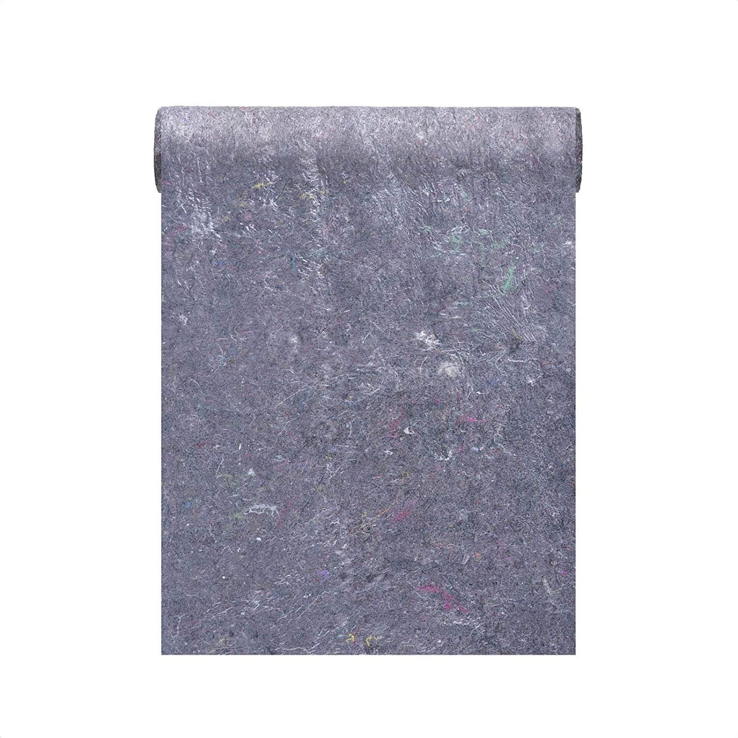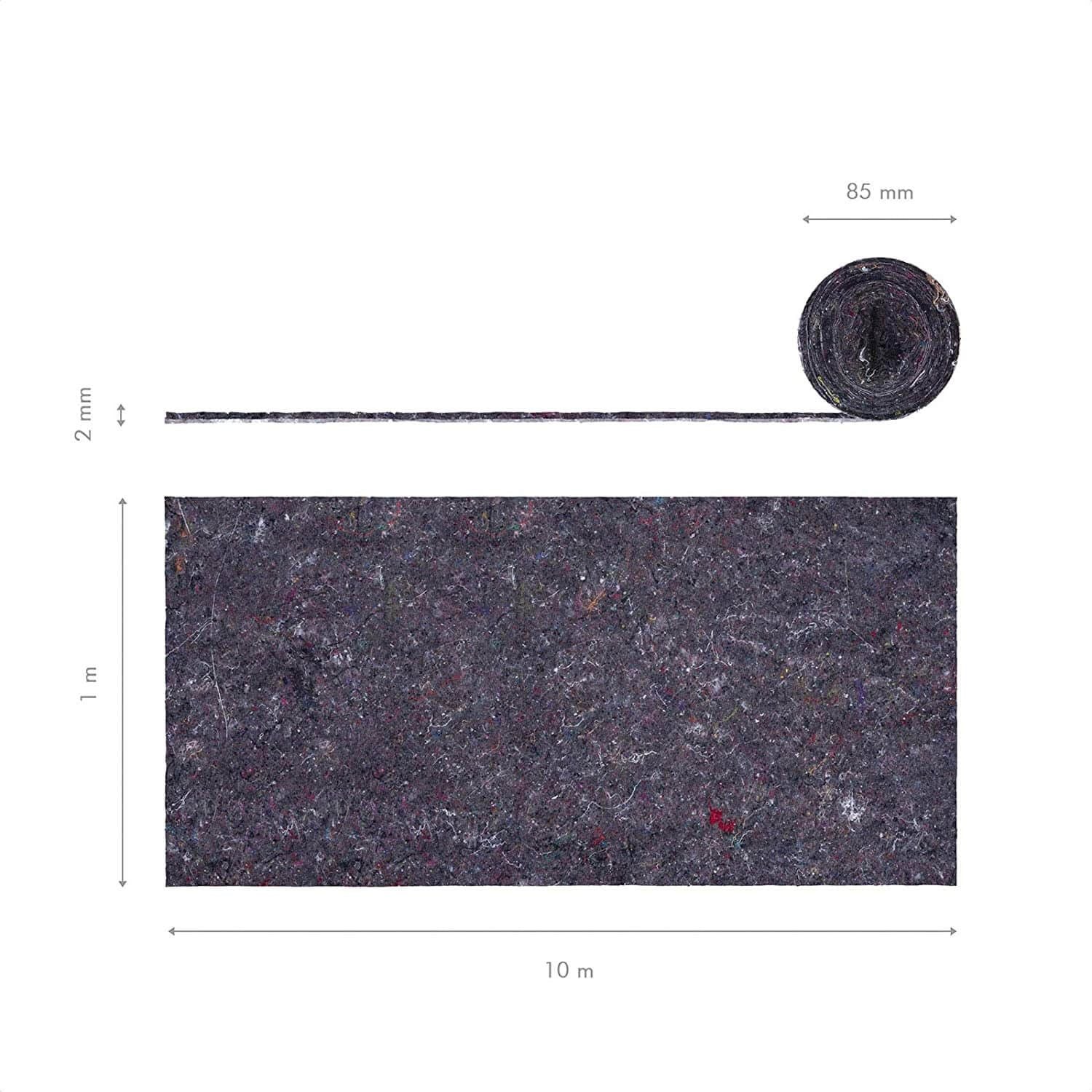 Vilt vloerbedekking van 10 meter lang en 1 meter breed. Polyester, katoen en polyethyleen lichaam. Waterdicht en herbruikbaar. Absorbeert verf en vloeistoffen. Antislip.